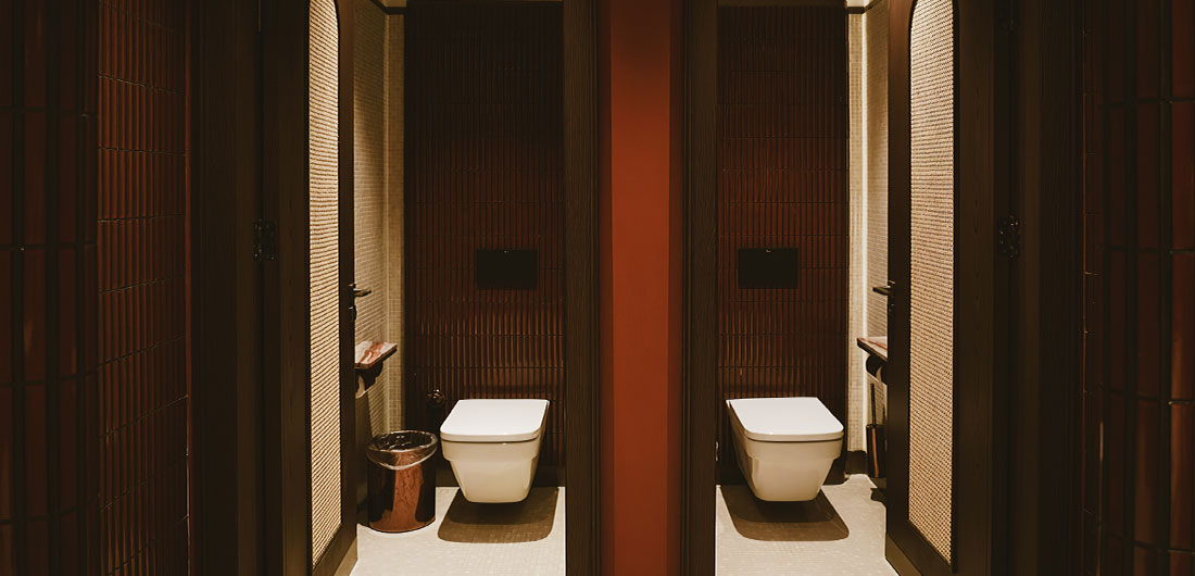 Bespoke ceramics in the restrooms further emphasises the restaurant’s commitment to combining modern comfort with cultural elements. Special attention was paid to maintaining a cohesive look, ensuring that the toilets, like the rest of the restaurant, reflect the theme of natural unity and timelessness.